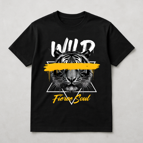 Unleash your inner beast with the Wild Fierce Soul tee – where bold design meets fearless attitude. Featuring a powerful tiger graphic with striking yellow accents and the word "WILD" roaring behind it, this shirt is made for those who walk their own path with confidence. The sleek black backdrop makes the design pop, while the “Fierce Soul” message adds the perfect edge.